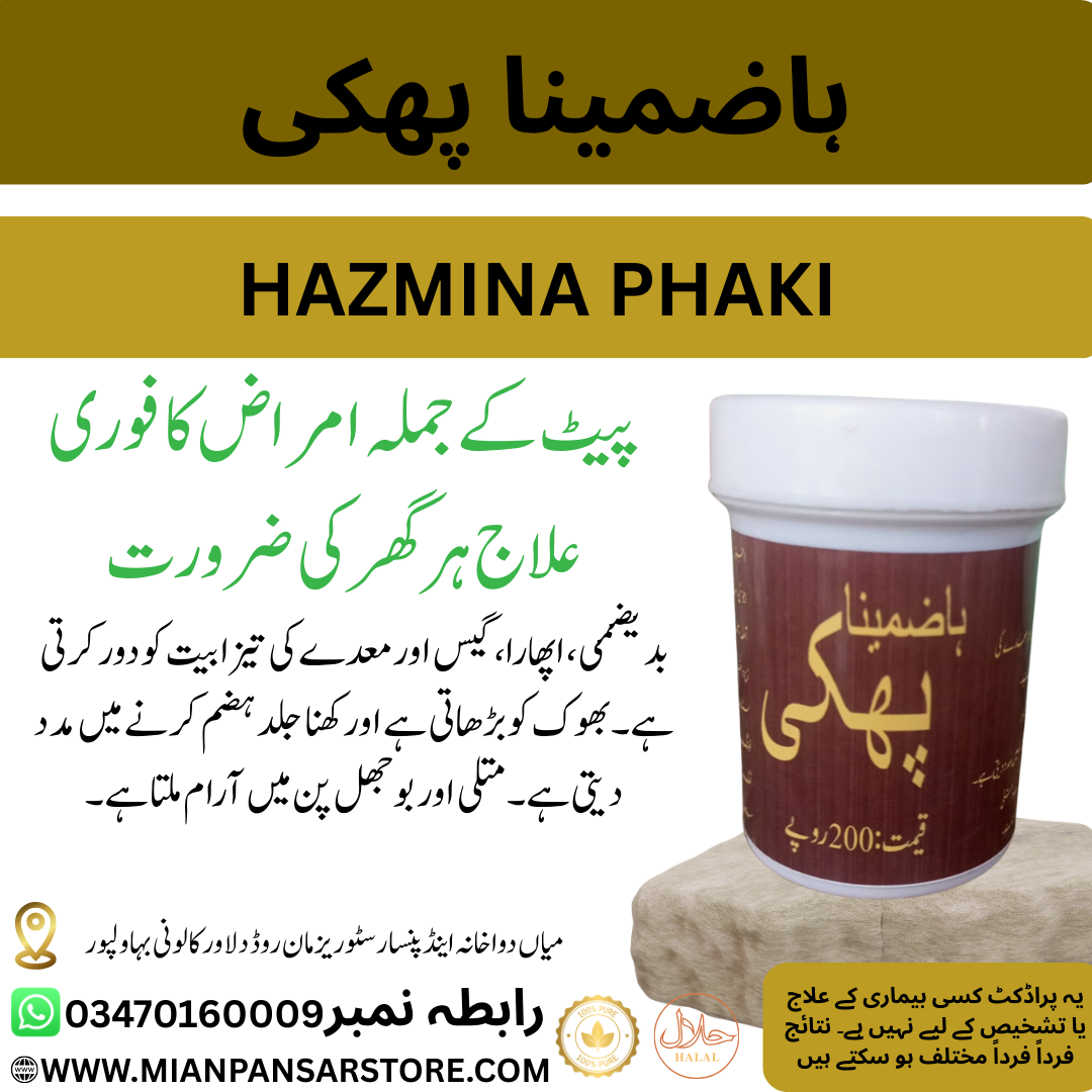 ہاضمینا پھکی ایک مکمل ہربل فارمولا ہے جو پیٹ کے جملہ امراض کا فوری اور مؤثر علاج فراہم کرتی ہے۔