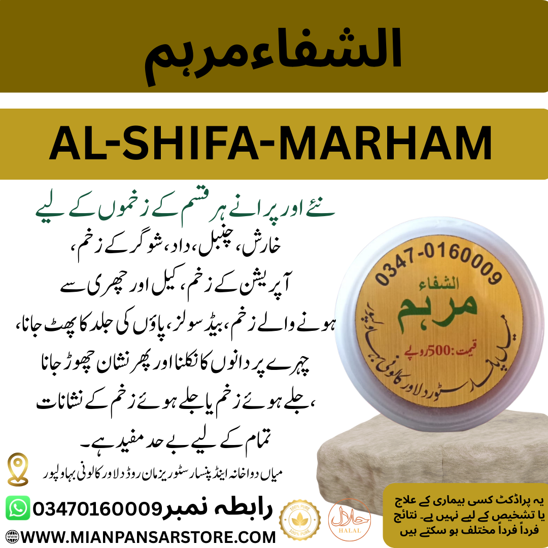 الشفا مرہم پرانے سے پرانے زخموں کے لیے بے حد مفید ہے، خواہ وہ شوگر کی وجہ سے ہوں، کسی چوٹ کے نتیجے میں ہوں یا زہریلے جانور کے کاٹنے سے۔